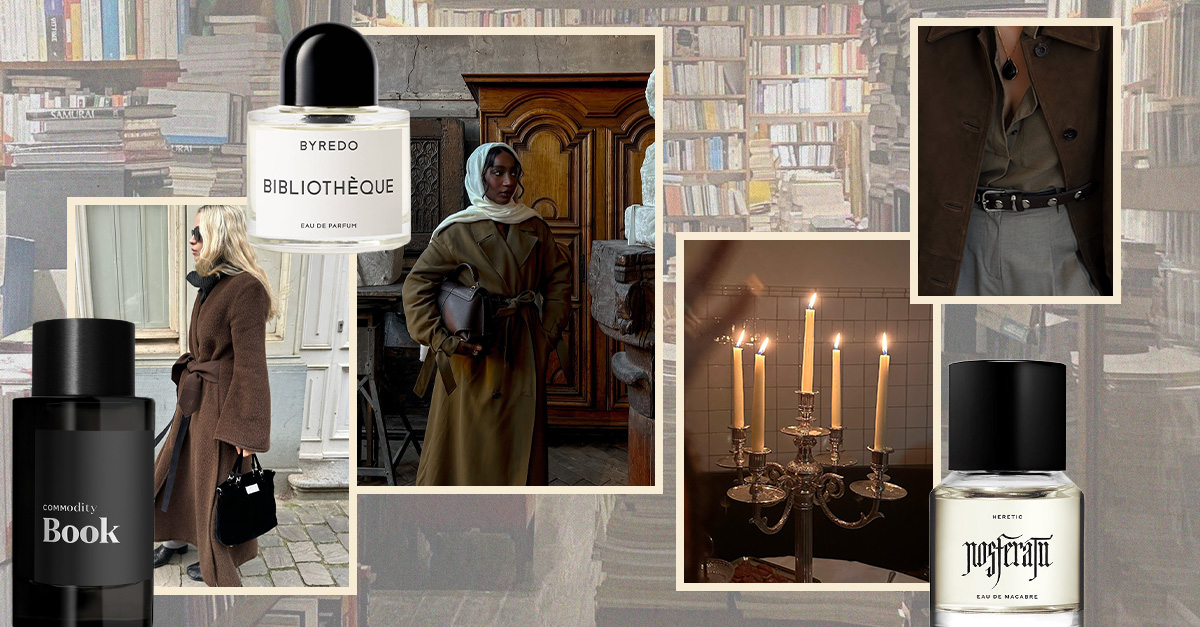 There are many ways that fashionable people approach fall style. Some play the layering game and stack woolen trenches over cashmere sweaters and asymmetrical satin slips, while others keep it classic with a dependable pair of jeans and a tweed jacket—though, everyone switches things into a moodier gear when it comes to autumnal perfume. There are more Pinterest-level fall aesthetics than we can count, but the one that swirls in our minds like falling leaves is this edgy, academia-inspired “core” that has a nearly direct translation from fashion to fragrance.